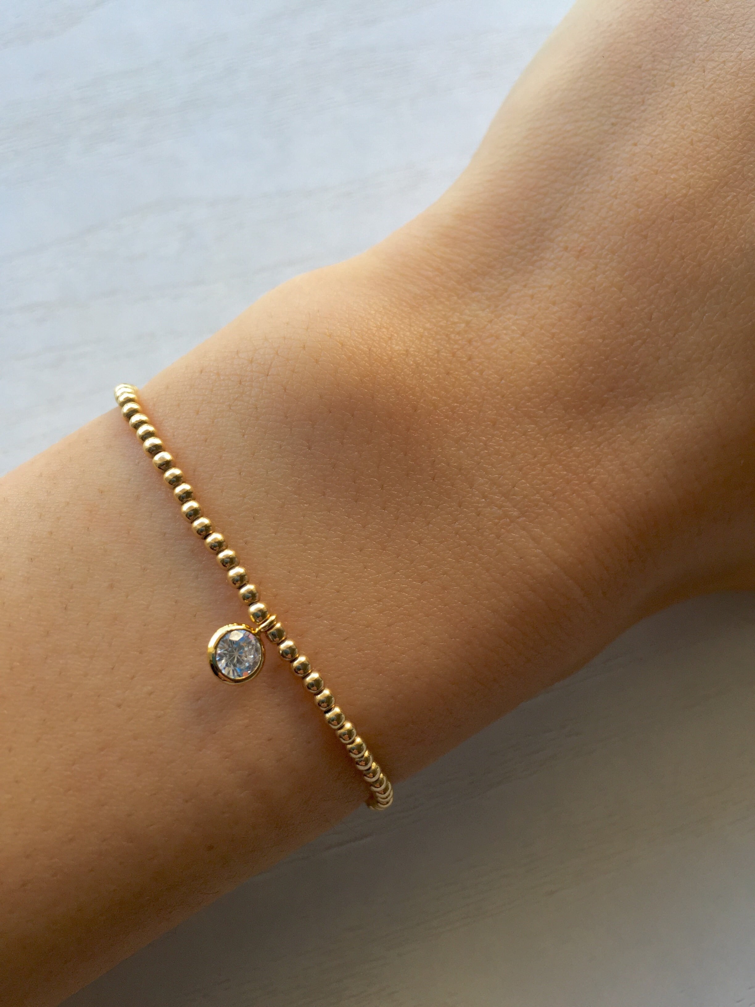 タグプレート、ゴールドビーズ、ジルコニアチャームは全て14kgfでのお作りです。 ガラスビーズは日本製の高品質なものを厳選して使用しております。 (14kgfとは、総重量の1/20以上の重さの14kを真鍮に圧着させている金属です。 美しい金属の輝きが続きます。海外ではジュエリー扱いの素材です。)