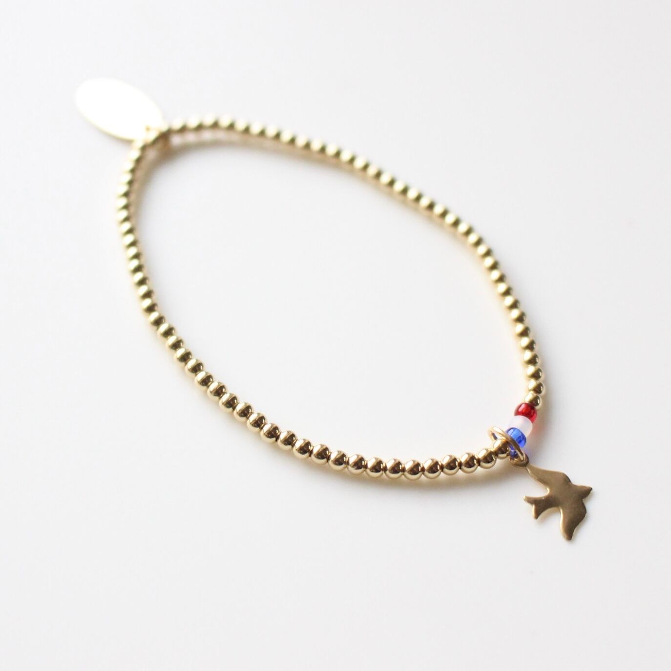 タグプレート、ゴールドビーズ、鳩のチャームは全て14kgfでのお作りです。