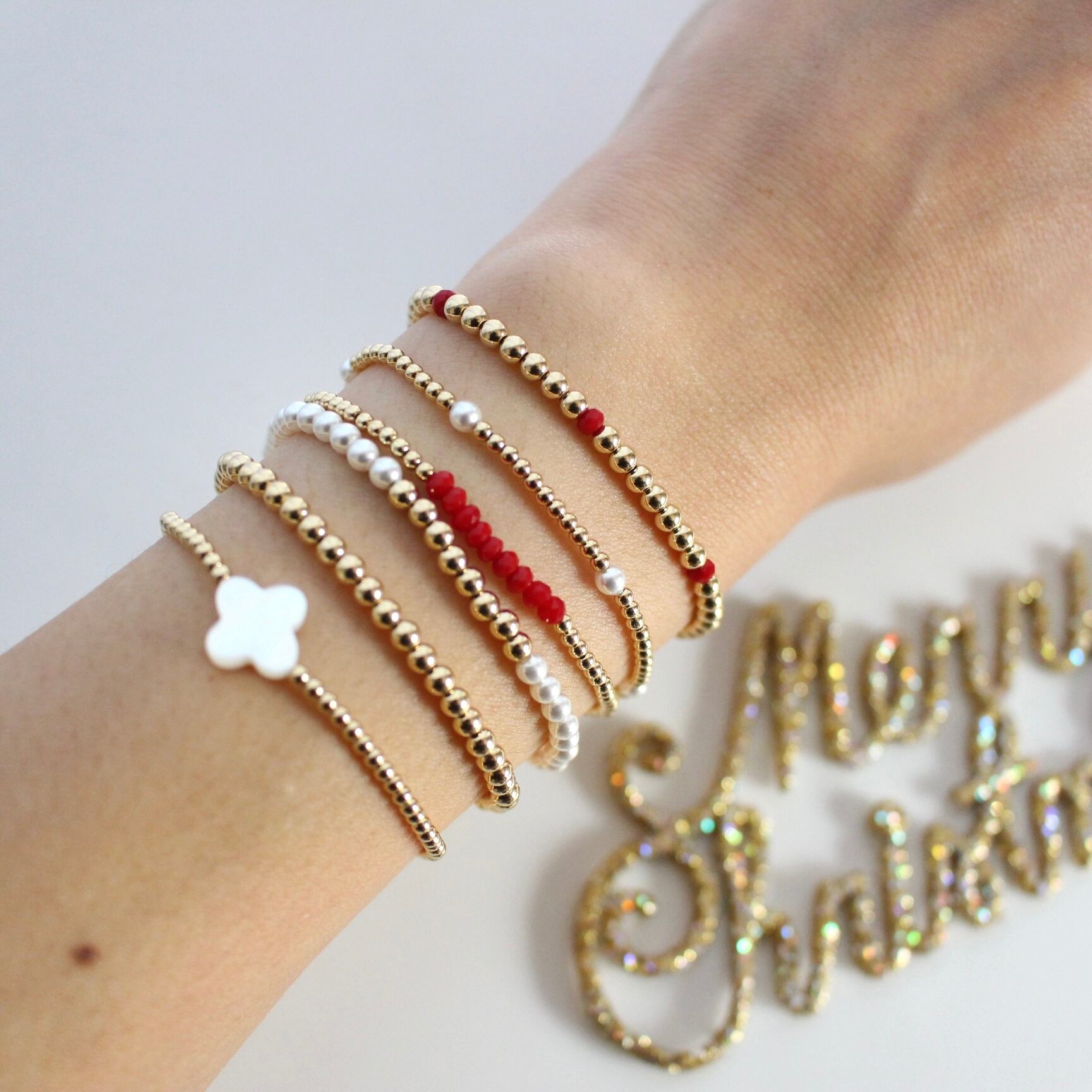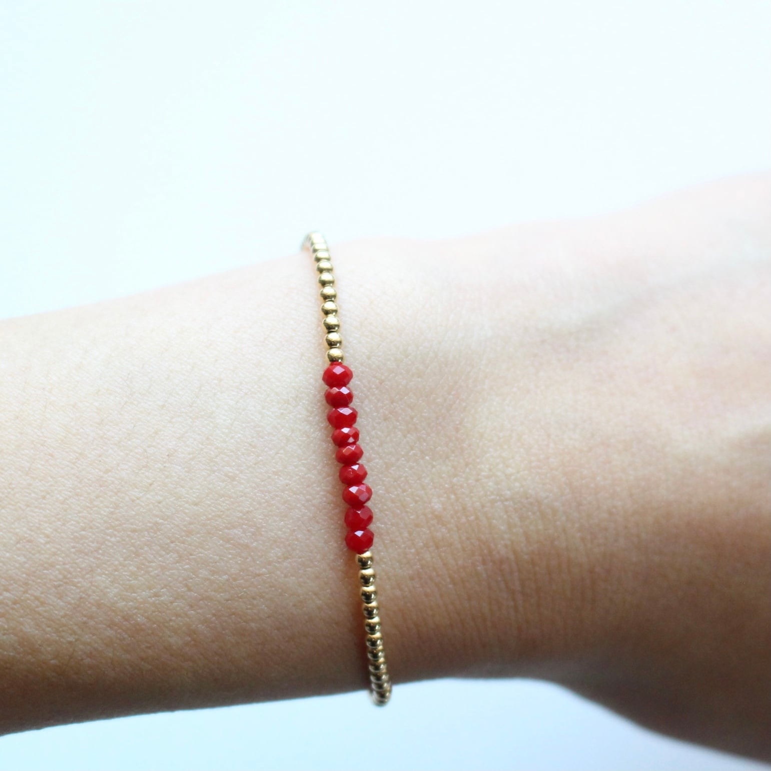 ゴールドのブレスレットのセンターにクリスマスらしい深みのある赤を配置しました。